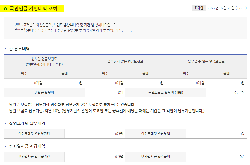 만약 본인이 가입 후 납부내역이 있다면 그에 맞는 정보를 확인하실 수 있습니다.