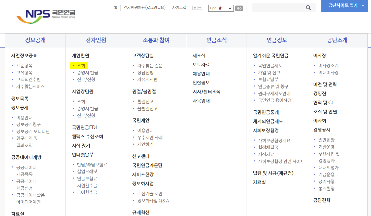 국민연금 납부액 조회도 국민연금 예상수령액 조회와 마찬가지로 국민연금공단 홈페이지에서 확인이 가능합니다.