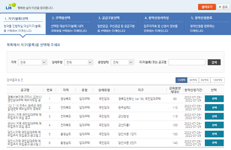 그럼 다음과 같이 신청가능한 행복주택을 확인할 수 있습니다.