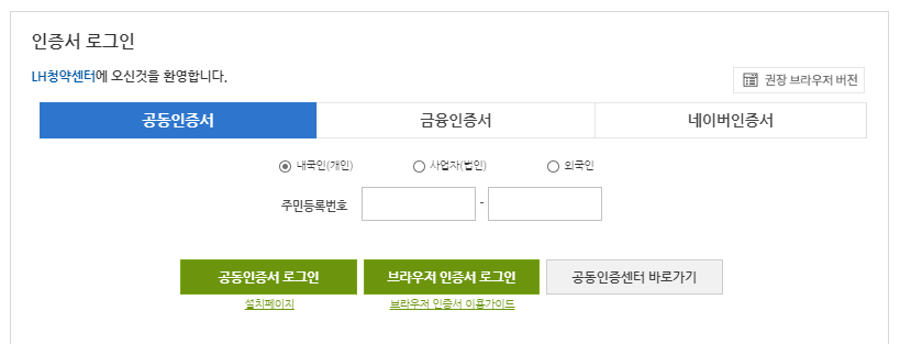 공동인증서, 금융인증서가 있어야하며 네이버 간편인증서도 가능하기때문에 쉽게 로그인하실 수 있습니다.