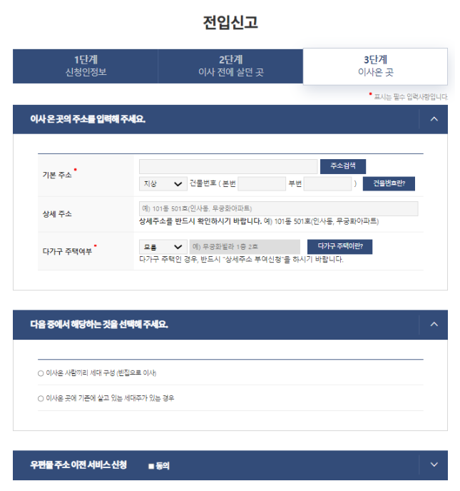 이사 가는 곳의 주소지를 작성하고 정보제공의 동의를 하시면 됩니다.