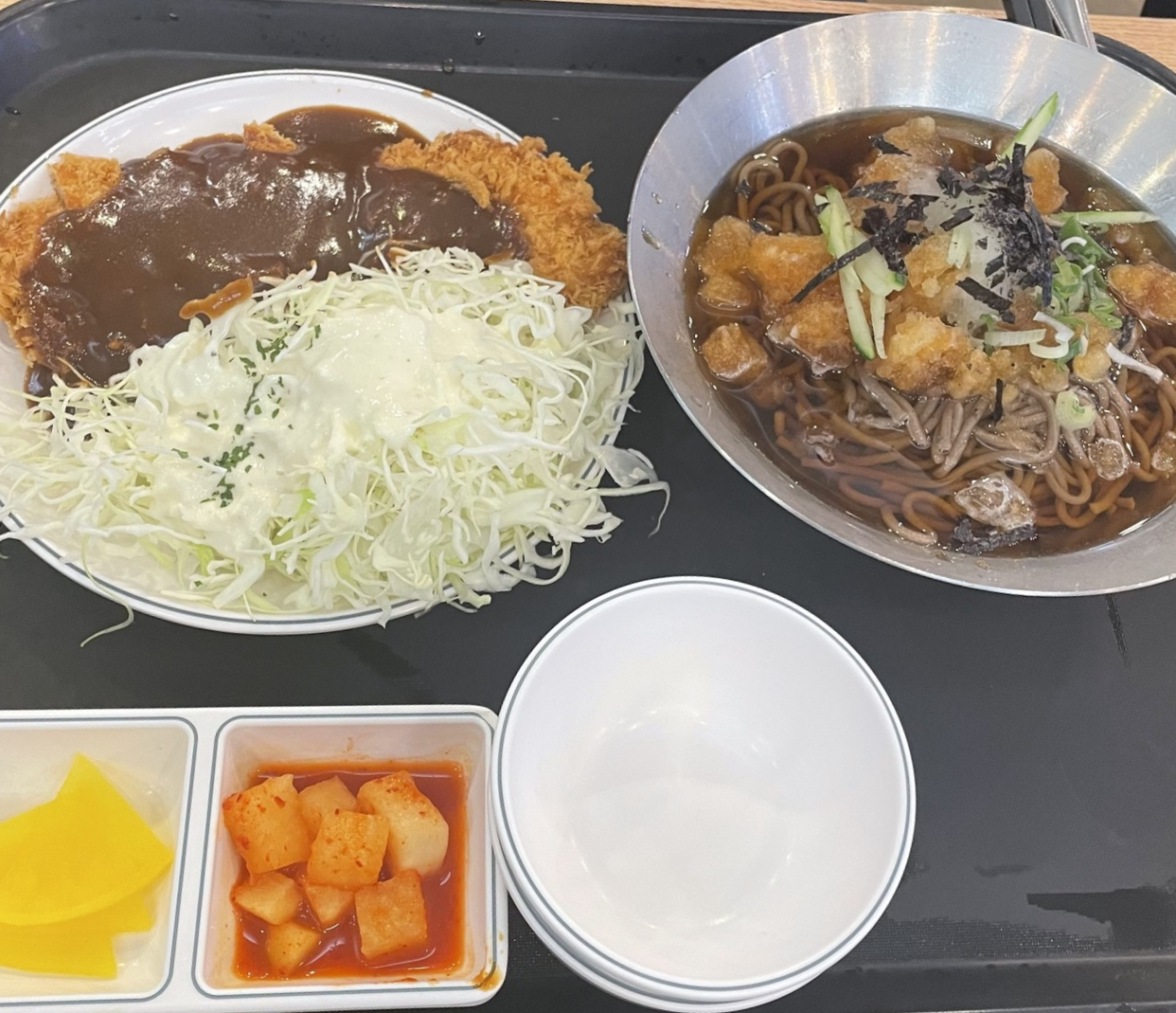 누나돈가스와 냉메밀이 적당량으로 함께 나오는 메뉴입니다.