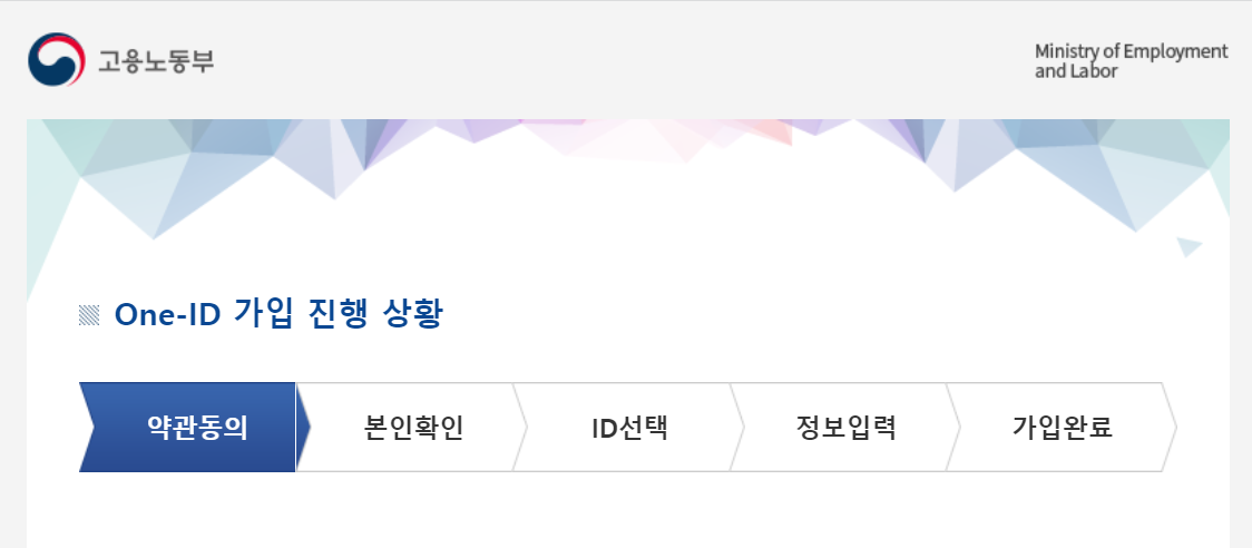 이후 본인인증을 통해 회원가입을 진행해줍니다. 이때 one-id로 가입이 되는데 one-id란 민원마당, 워크넷 등에서도 함께 사용할 수 있는 아이디 임으로 한번 가입해두면 한번에 이용가능합니다.