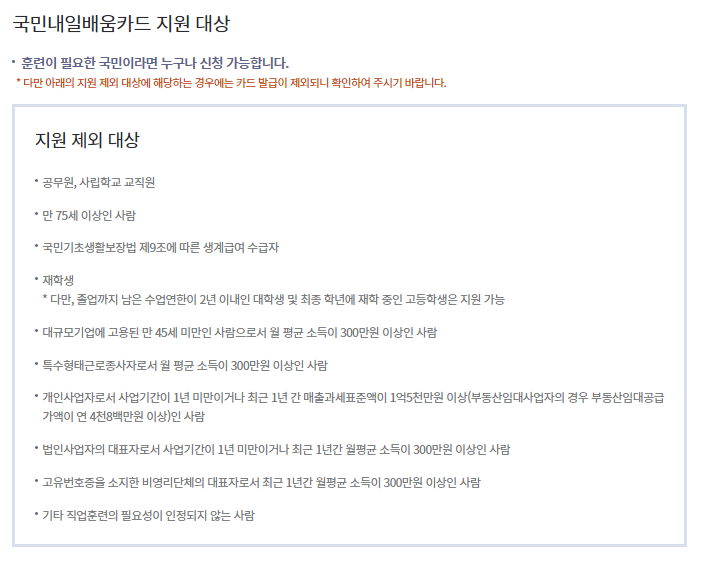 만일 만 15세 이상의 국민이더라도 국민내일배움카드 신청자격에 맞지않는 경우도 있습니다.