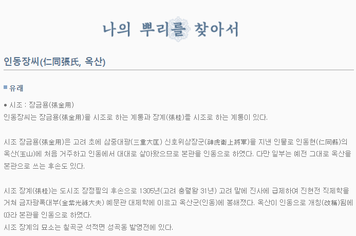 저는 인동장씨를 검색해보았습니다. 검색결과는 다음과 같습니다.